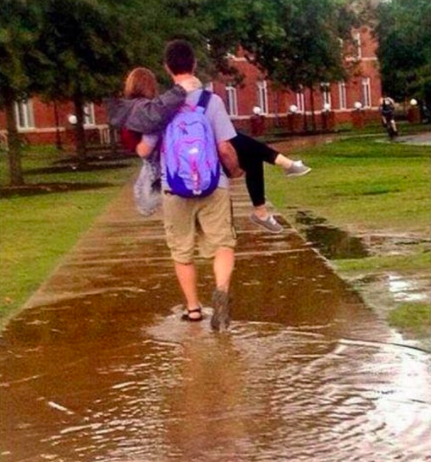 ▼為了不弄濕女友的鞋子,他霸氣公主抱。