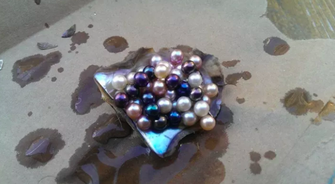 ▼他抓了一堆牡蠣,挖出53顆珍珠送女友。