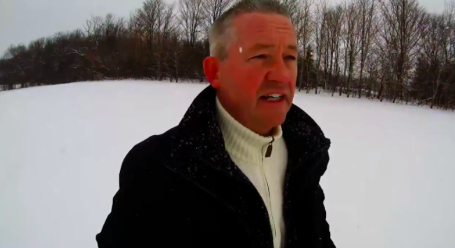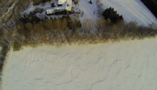 ▼他在雪地裡走了好久,只為寫出「生日快樂」,讓妻子開心。