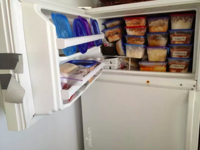 ▼她怕不擅下廚的男友餓到,出遠門前在冰箱裡塞滿了可以吃一個月的食物。