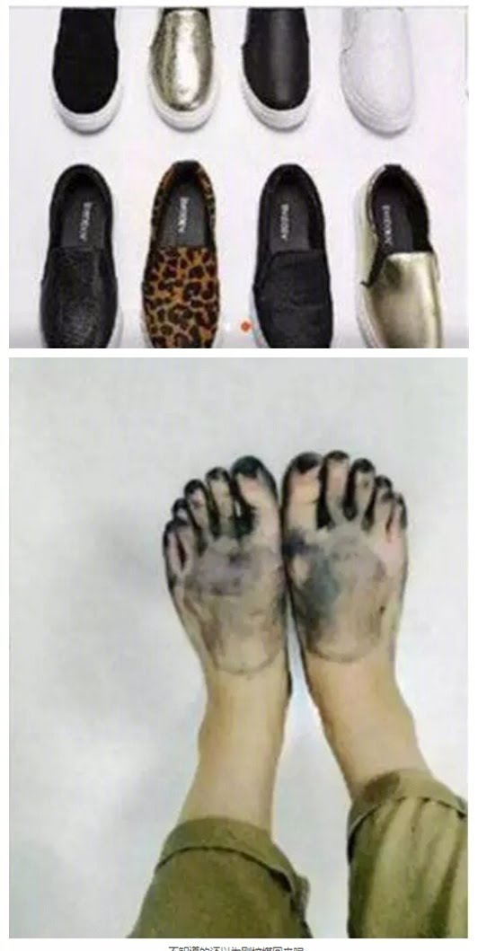 ▼鞋子竟然掉色,是用墨汁染的嗎?