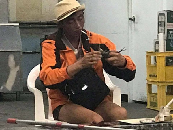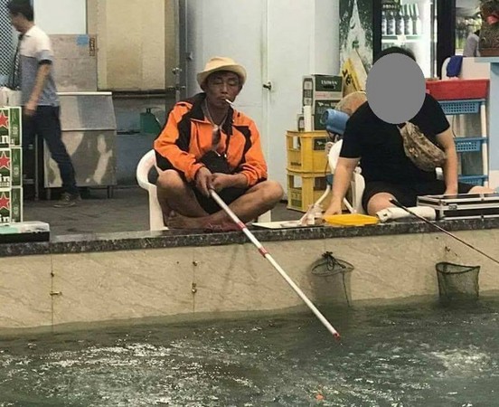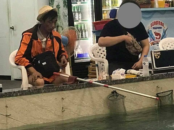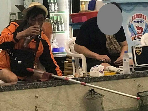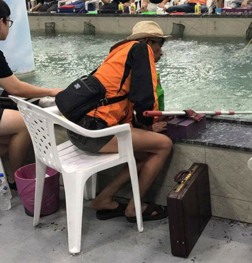 2017年11月21日前幾天,台中一名網友去釣蝦場放鬆,遇到了一位超強的釣客。只見那位中年阿伯頭戴白色圓帽,口中叼了根菸,還不時配口啤酒,看起來輕鬆愜意。他技術嫻熟,不一會兒就釣上好多蝦,但仔細看看,他的「釣竿」似乎不對勁……