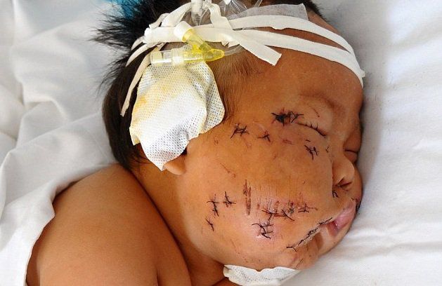 ▼小寶的臉部多處也被刺傷,長大後未知是否會留下疤痕導致破相。