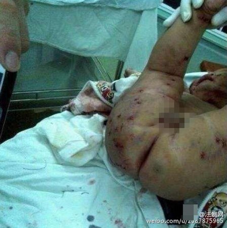 2017年11月22日中國杭州有一名外號小寶的男嬰,在8個月大時因為吸乳時因為太過用力,將母親的乳頭咬破導致她心生不滿,竟然隨手拿起旁邊的剪刀就往小寶身上刺去,造成他全身總共有90多處傷口,縫了100多針,簡直讓人不忍直視。