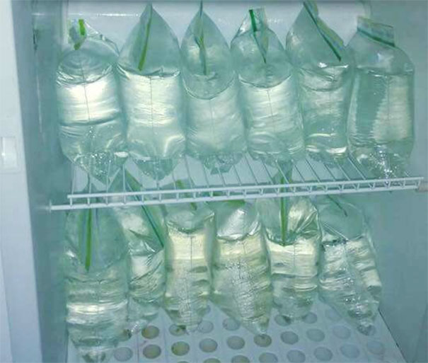 ▼每次煮義大利麵的時候都要燒開水,太麻煩了,所以一次煮好很多包水,把它們冷凍起來。