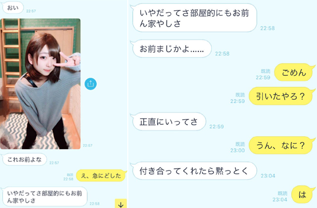 ▼@Elmon_0715回覆說:「抱歉,你是不是被嚇到了?」對方竟然表示:「要是你跟我交往的話,我就幫你保密。」