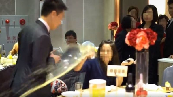 ▼吳女在喜宴上坐在「尊爵同事」桌,四周卻沒人認識她,等到主持人、服務人員來勸她離開時,她立刻拍桌叫囂,還怒撒果汁,最後氣沖沖離開現場,甚至不忘帶走喜餅,被網友戲稱為「幹餅姐」。