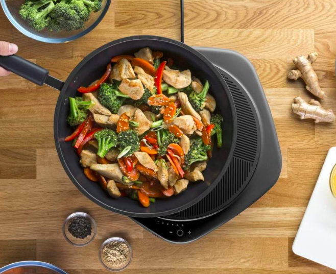 ▼智慧平底鍋,在App上下載食譜,鍋子會自動調整火候。