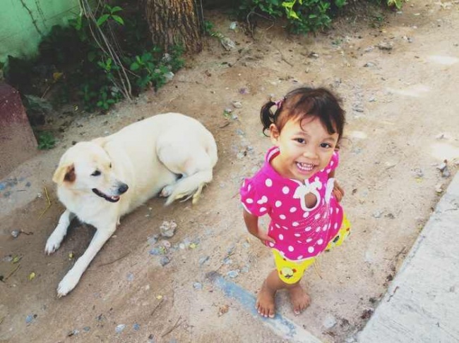 ▼拍攝狗狗時被可愛的妹妹亂入了。