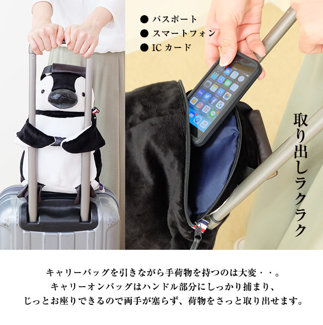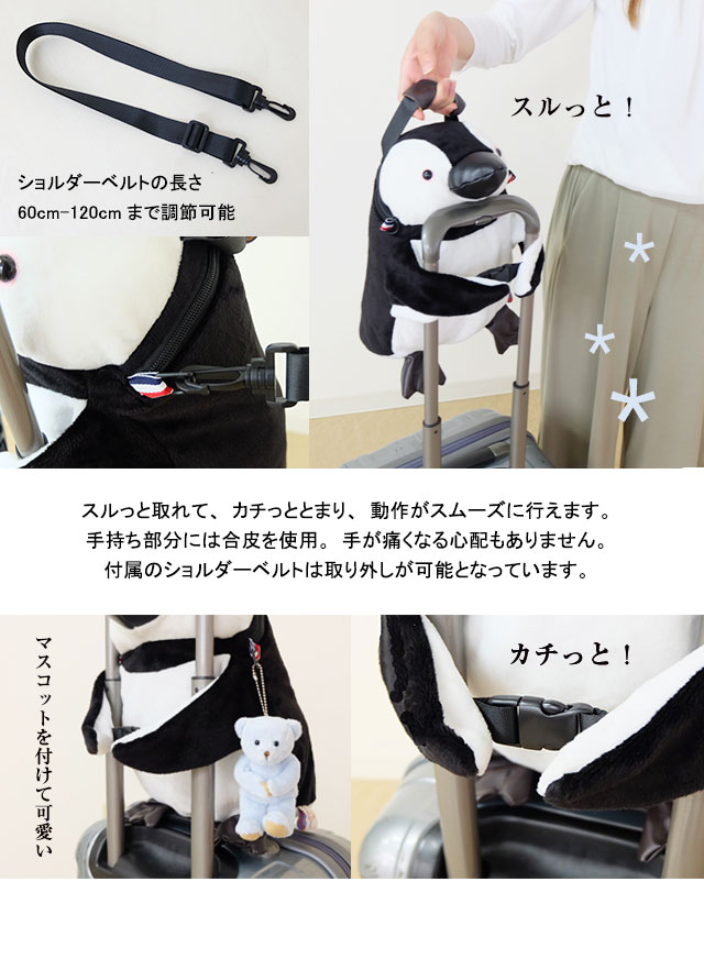 ▼只要扣上企鵝手之間的扣環,就可以讓它趴在行李箱上,一起旅行!
