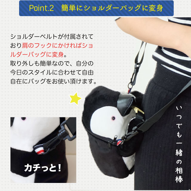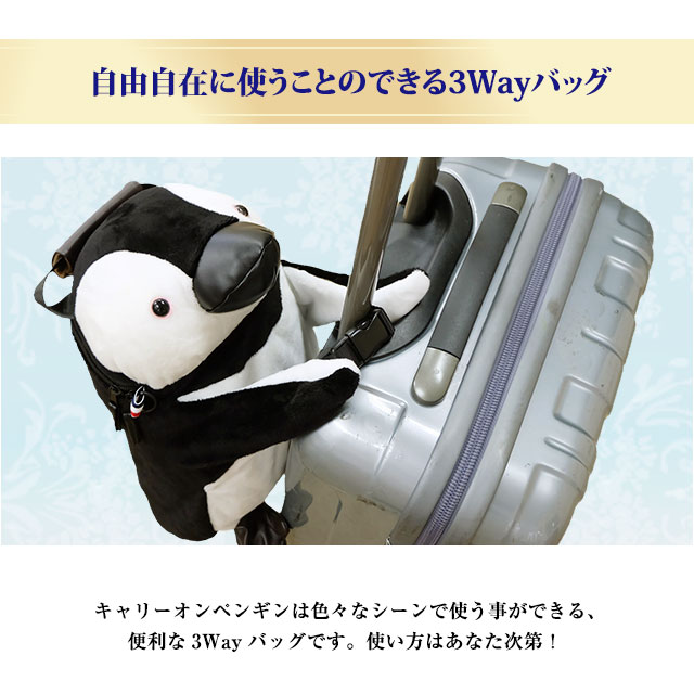▼當然你也可以調整背帶,讓它變成肩背包,帶著企鵝四處跑!