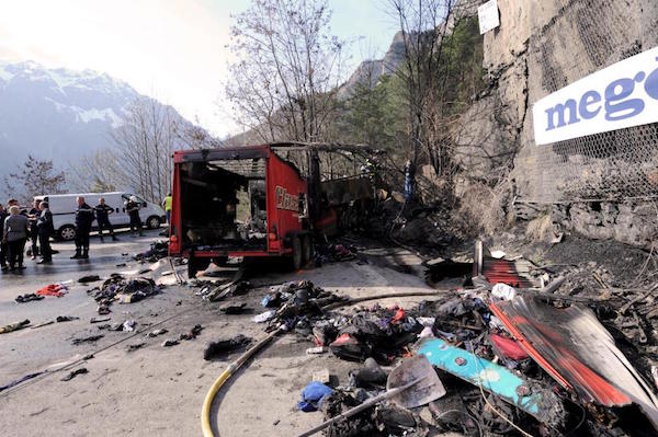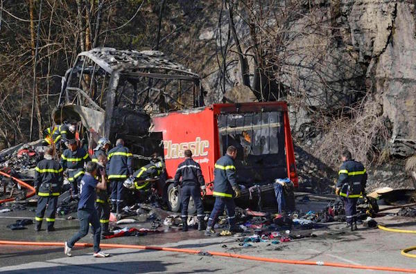 ▼2013年,63歲的英國籍司機馬瑞斯(Maurice Wrightson)正在駕駛一台長途巴士,當行經法國阿爾卑斯山的髮夾彎時,煞車突然失去控制,整輛車撞上路邊石牆,隨即起火爆炸。