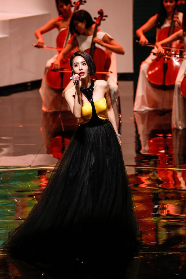 ▼蔡依林昨天身穿黃黑禮服登台,演唱包括鄧麗君《甜蜜蜜》、甄妮《流金歲月》、蔡琴《最後一夜》、鳳飛飛《追夢人》、《祝你幸福》等經典歌曲,沒想到《甜蜜蜜》開口大走音,後面演唱也差強人意,直到唱到其他歌時才恢復水準。