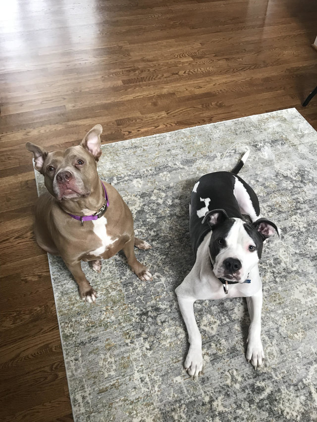 ▼肉桂被領養之後,改名叫蘿西(Rosie),而歇爾頓家已經有一隻三歲的小男生比特犬布魯(Blu)了,因此一開始他們沒有打算讓狗狗馬上聚在一起,希望蘿西可以先熟悉環境,再來認識新朋友。不過蘿西跟布魯就像是彼此已經期待已久一樣,他們馬上就混在一起了!