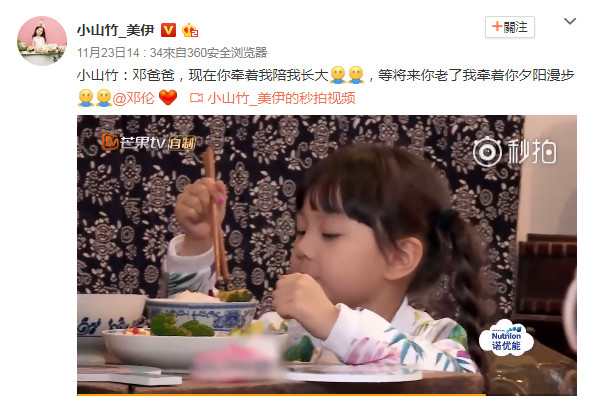 ▼後來小山竹在微博上分享了這一片段,說:「鄧爸爸,現在你牽著我、陪我長大,等將來你老了,我牽著你夕陽漫步。」網友們紛紛表示:「可愛的大姑娘,我看哭了」、「吃著飯突然冒出這句,真的很感動」、「一聲鄧爸爸,一生鄧爸爸」、「這一段看的都有淚花了,謝謝你小山竹,鄧爸爸遇到妳真幸運」。