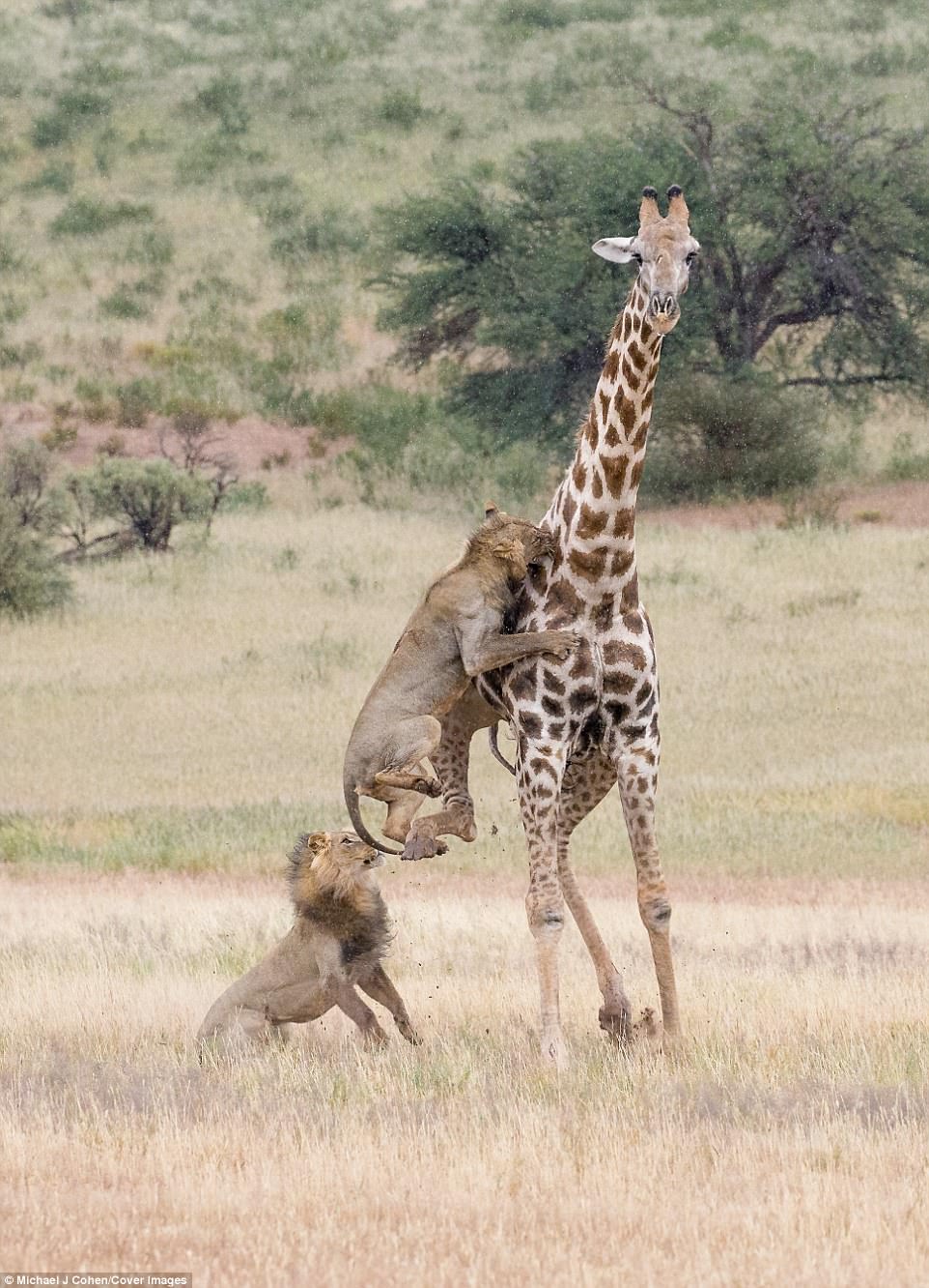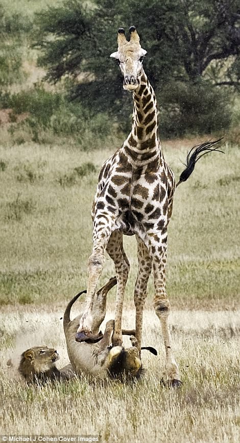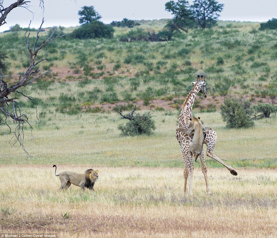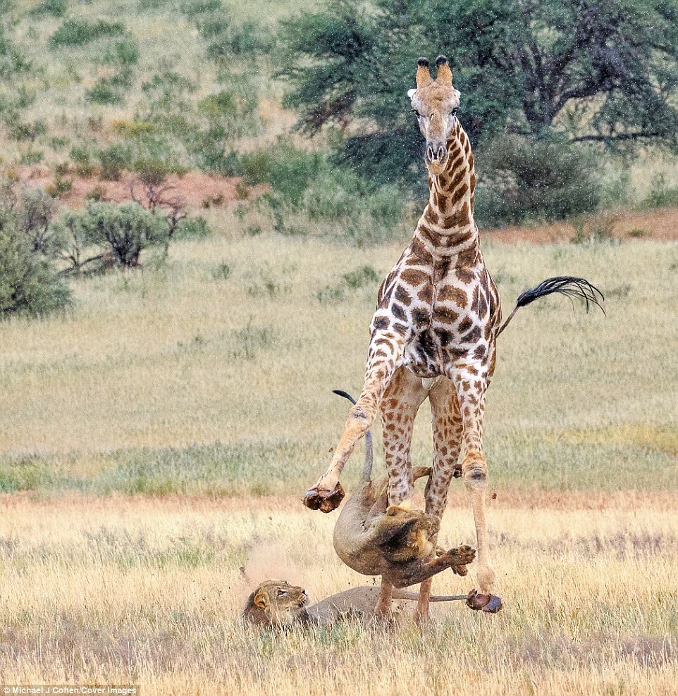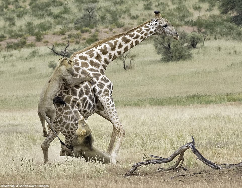 2017年11月28日長頸鹿是一種很受歡迎的動物。別看牠們平時很溫馴,戰鬥起來卻超強,所以非洲草原上的捕獵者一般很少把牠們當成目標。但在弱肉強食的自然界,什麼都可能發生。最近,紐約攝影師Michael Cohen就在南非拍攝到了震撼的一幕。