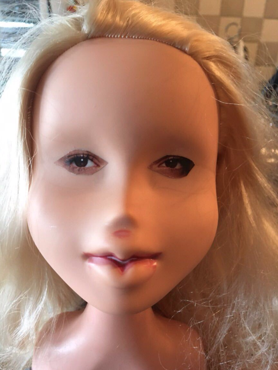 ▼阿公幫忙清潔後的芭比娃娃,大眼睛、小粉唇全都不見了,這是一次徹底的卸妝!求此刻孫女心中的陰影面積。