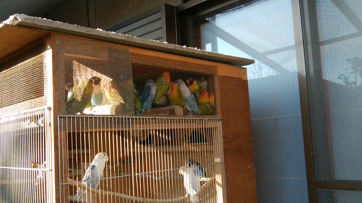 ▼大黑鷹舒展了一下翅膀,石化的鳥們差點嚇破膽,全都擠到了籠子一邊。主人看到後覺得超好笑,還說很像滿員電車。