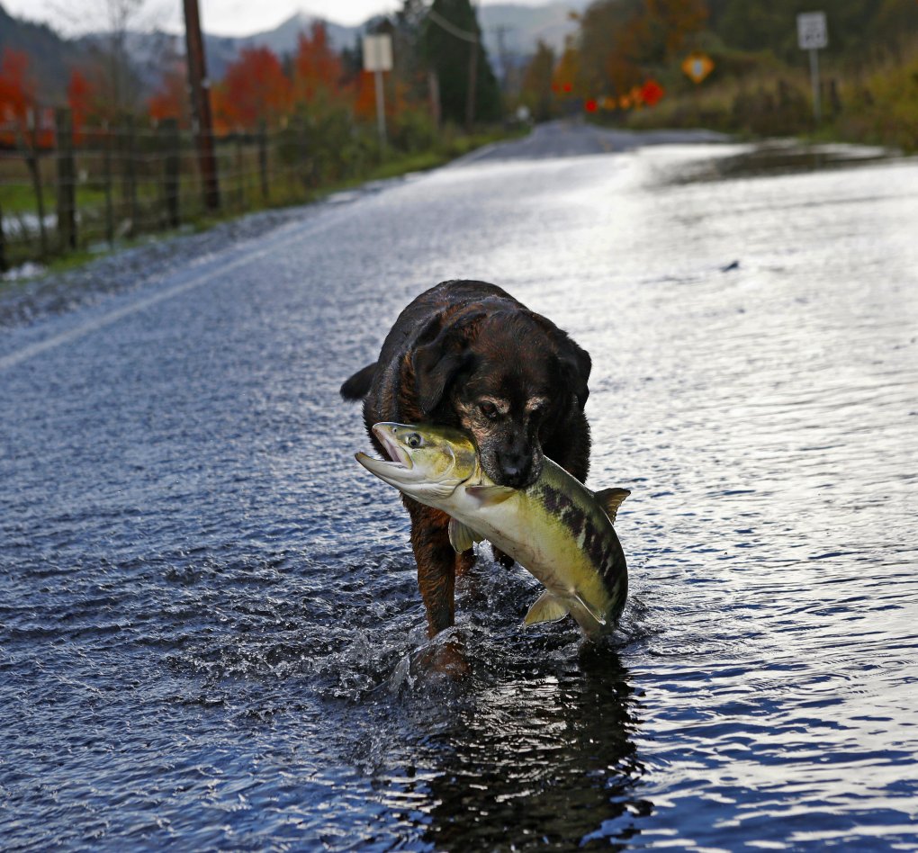 「鮭魚過馬路」生小孩的奇景每年都會發生,路過狗狗發現後…牠的反應害網友笑崩!(內有影片)