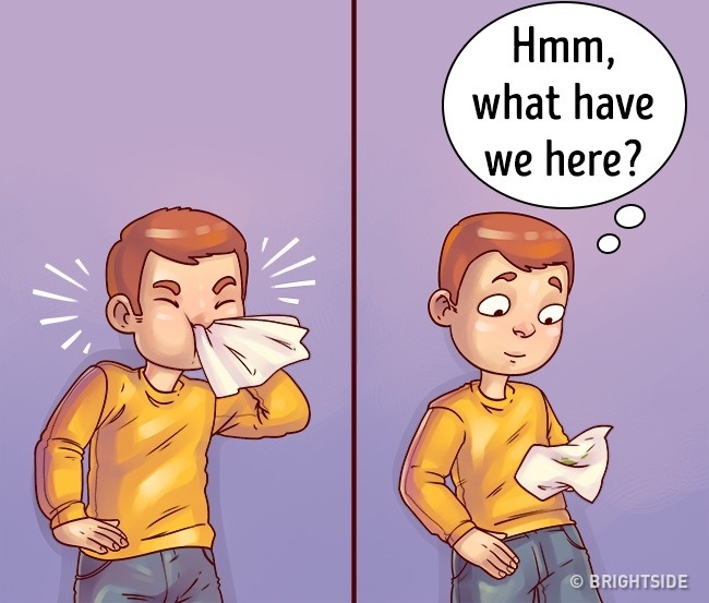 ▼擤完鼻涕會看好久,觀察鼻涕的顏色、濃稠度。