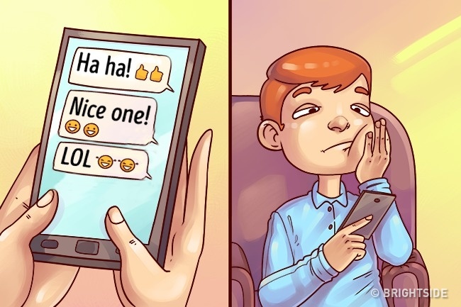 ▼面無表情發「哈哈哈」、「這個真棒」、「LOL」之類的訊息。