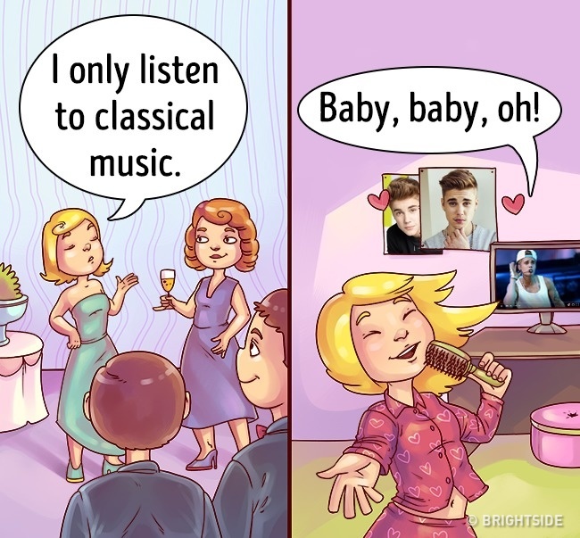 ▼在外說「我只聽古典音樂」,回家後流行歌曲唱不停。