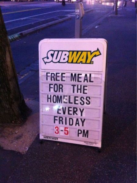 ▼「每週五下午3~5點給流浪者免費提供食物」,這是一家充滿愛的快餐店。