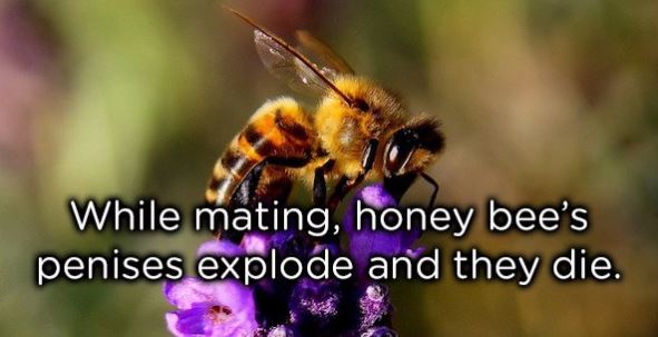 ▼17.雄蜂交配完後,牠們的生殖器會跟腹部分離整個被扯裂般的爆炸,然後他們就會死掉。(幫QQ)