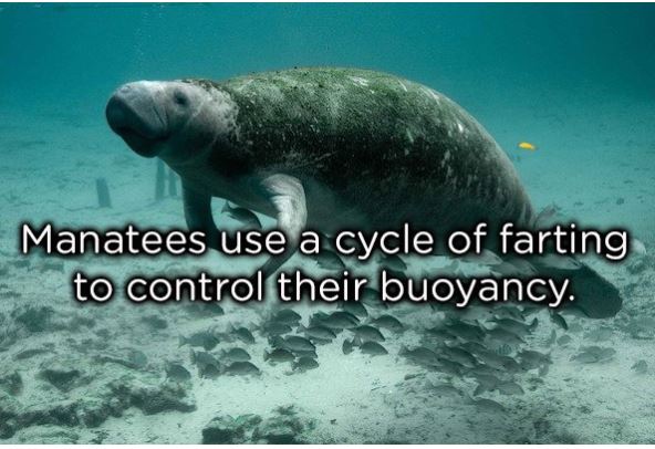 ▼10.海牛會用連續放屁技來控制他們在水中的浮力。