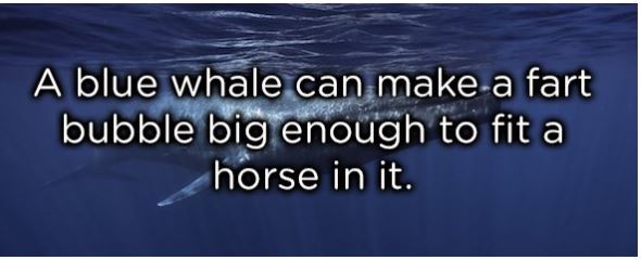 ▼11.藍鯨放的屁,泡泡可以大到包住一隻馬。(一隻成馬大概有200公分喔!)
