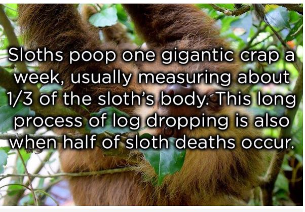 ▼8.樹懶一個禮拜大一次超長的大便,大概會有1/3身長的大便,然後因為要大很久,所以很多樹懶這個時候被攻擊的話就會死掉。(大便到一半死掉,真的超慘。)