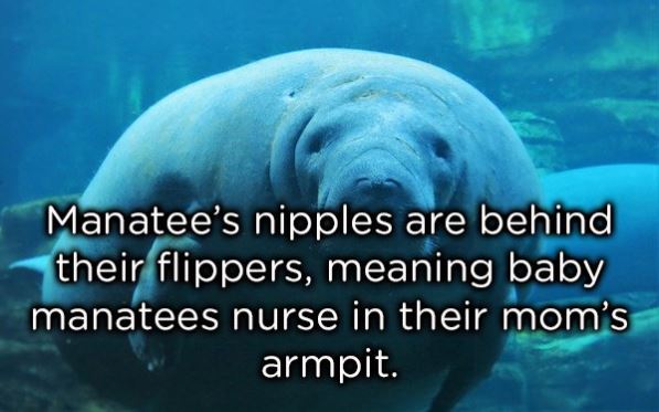 ▼7.海牛的乳頭在他們的鰭後面,所以海牛寶寶要在媽媽的腋下喝奶。(綺夢是你?)