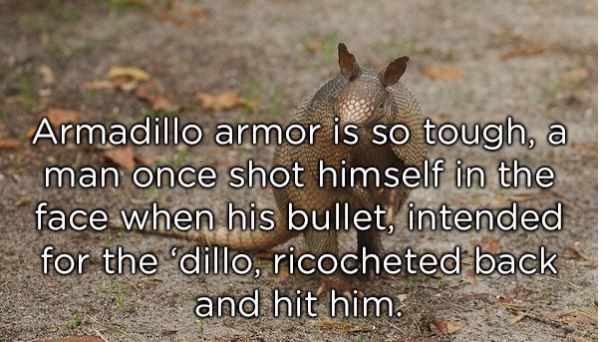 ▼13.犰狳的殼超硬,如果你用子彈打它,它的殼可以反彈子彈,你反而可能還被自己的子彈射到。