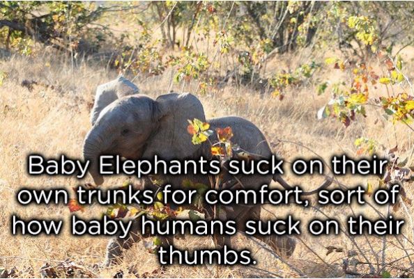 ▼19.小象會吸自己的鼻子來獲得安全感,就像我們嬰兒吸自己的大拇指一樣。