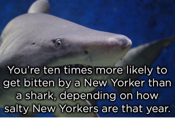 ▼16.被紐約客咬的機率比被鯊魚咬的機率還高,而且這個機率隨著紐約客有多生氣而攀升。(所以去海裡玩安啦?)