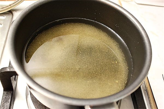 ▼先把糖、醋、水放在鍋中攪拌均勻,然後煮沸,放在旁邊晾涼備用。