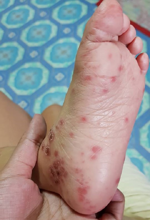 ▼Madelyn連忙帶兒子去醫院檢查,醫師看到後表示,Clark罹患了手足口病(HFMD)。這是一種由克沙奇病毒 (coxsackievirus) 引發的疾病,具有很強的傳染性,主要在亞洲國家盛行。小孩患病後會出現發燒,乏力、噁心、頭痛、咽喉腫痛等症狀,四肢、臀部還會出現皮疹。