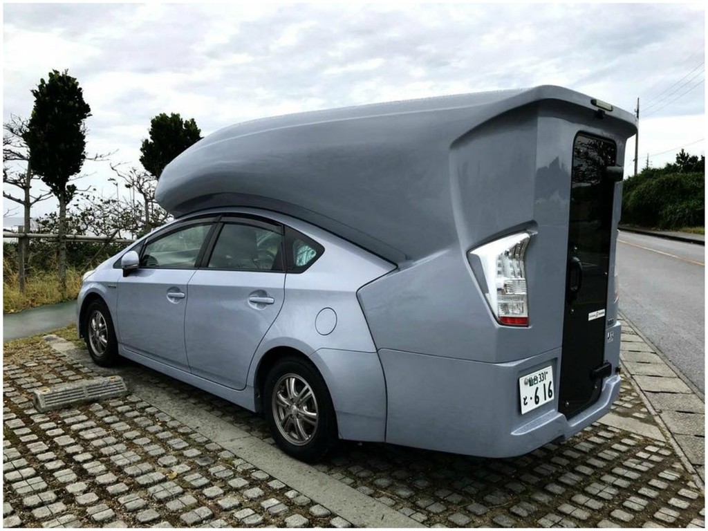 有車一族們,你的車是豐田 Prius嗎?這款車很常見,還是很多城市的計程車指定車款。如果你想開豐田 Prius出去旅行,可以在車尾的部分加載Relax Cabin外置車廂,原本普通的車子瞬間就能變身小型露營車。