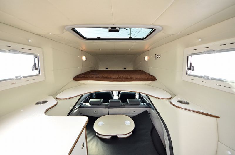 ▼加上外置車廂後,車子的休憩空間增加,車頂還有透明天窗,和愛的人一起在野外看星星,想想就浪漫。