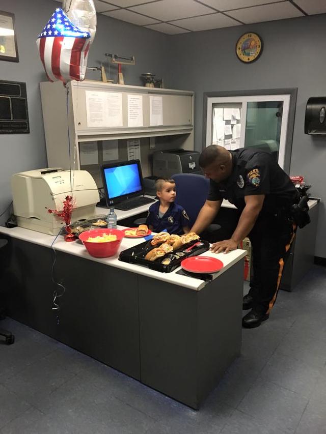 ▼William想做的好事有很多,第一件就是請當地警局的警察吃午餐,因為警察叔叔就連他在睡覺時也保護他的安全。媽媽幫忙與警局聯絡後,他特別買了Subway的潛艇堡和點心送過去,希望警察叔叔吃得開心,也吃得健康。