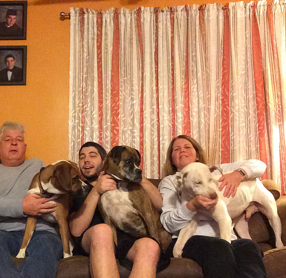 ▼帕特(Pat)和查克(Chuck Feldman)已經養了2隻狗和3隻貓,他們想要尋找一隻能夠同時配合他們家精力充沛的Cooper和已經8歲動作比較緩慢的Mocha的狗狗,他們在動物中心相中了亞當。
