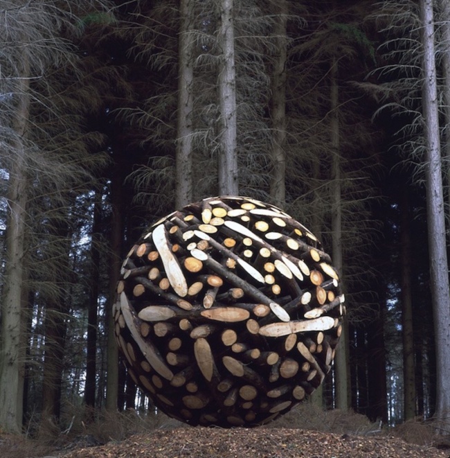 ▼巨大的木球,從山坡滾下去的話破壞力無窮。