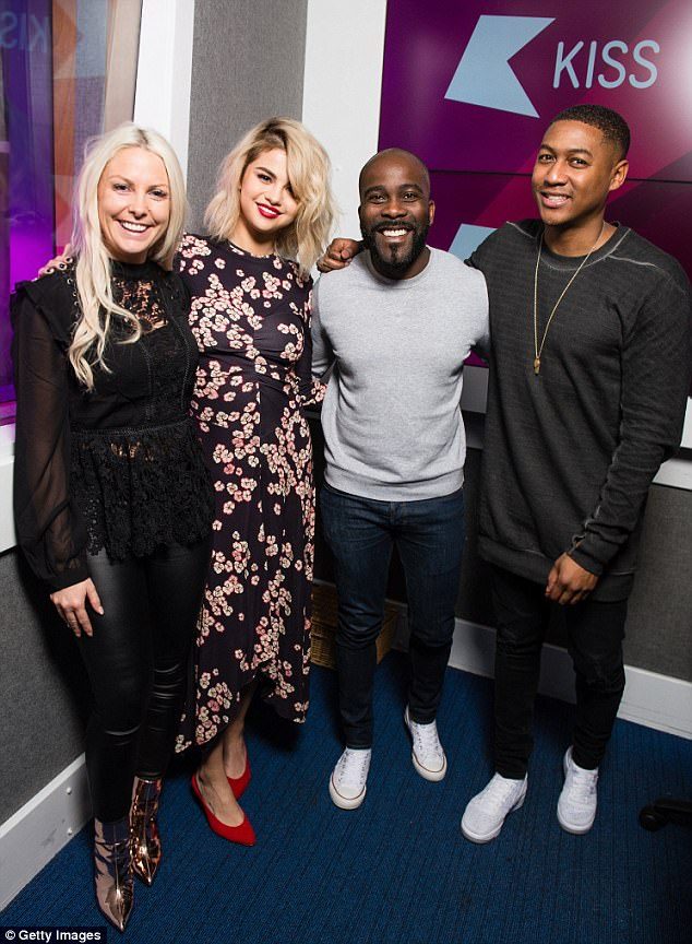 ▼她參加倫敦KISS廣播電視節目錄製,穿了粉色碎花黑長裙洋裝。
