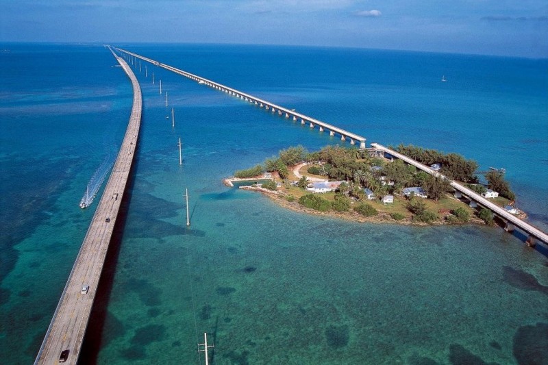 ▼位於美國佛羅里達州的七里橋,全長10931公尺,穿越島嶼和深不見底的海洋,一眼望去沒有盡頭。