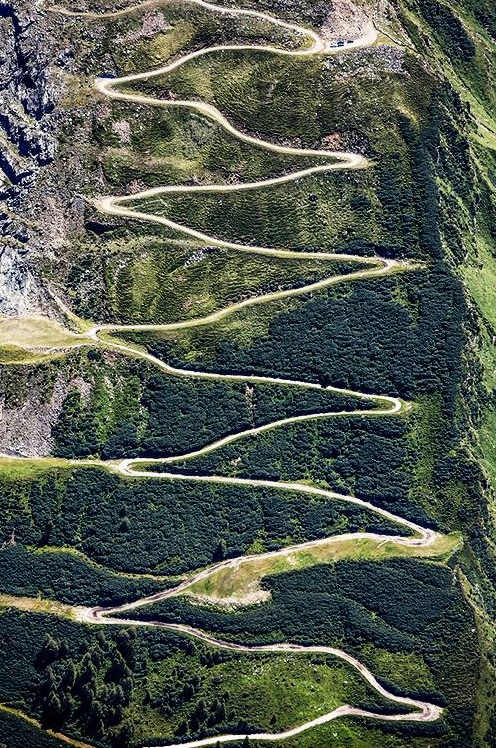 ▼奧地利米特希爾山區的公路,蜿蜒曲折。