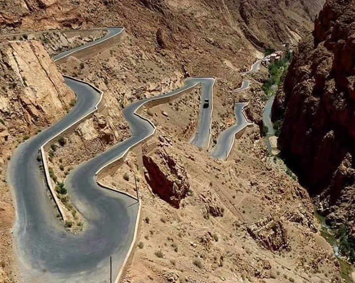 ▼阿特拉斯山脈中一條蜿蜒曲折的盤山公路,陡峭的地勢和各種急轉彎讓你驚叫連連。