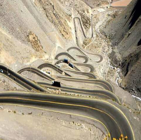 ▼智利門多薩的「蝸牛」公路,這樣的轉彎看著就眼花。