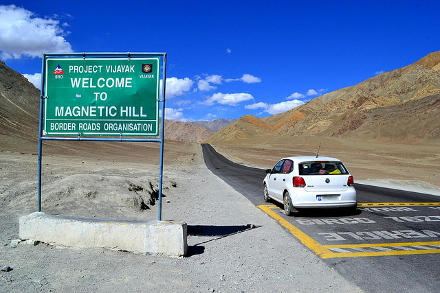 ▼印度,拉達克,磁山:這座山上有高速公路,據說這座山有磁性,從這裡通過的車子都會受影響,就連飛機飛過這片區域也會升高。有些人覺得這與磁場有關,也有人覺得這是周圍的山丘造成的視覺錯覺。世界上很多國家都有類似的磁山,比如加拿大、美國、澳洲等等。