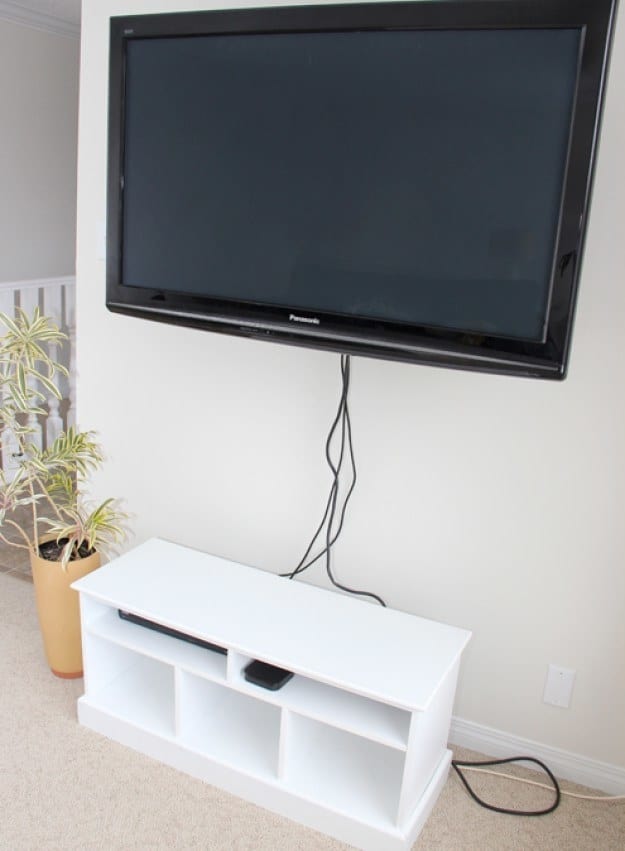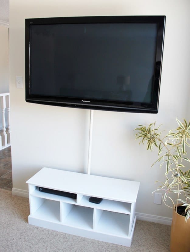 ▼電視線太醜了,用PVC管裹起來。