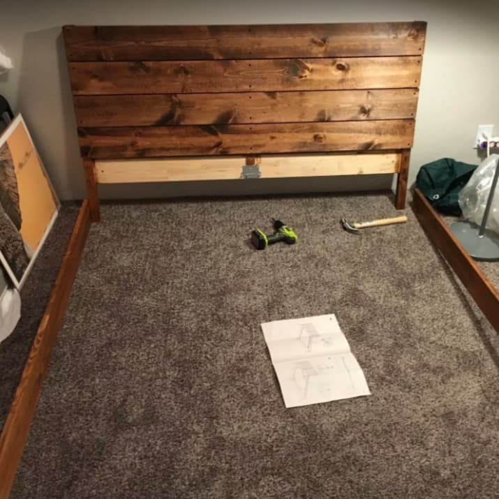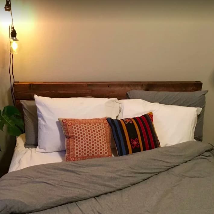 ▼床頭櫃木板故意弄得有點髒髒舊舊,看起來更有韻味。